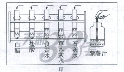 。(2)用pH试纸测定图甲中部分溶液的酸碱度:草木灰水pH