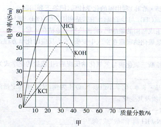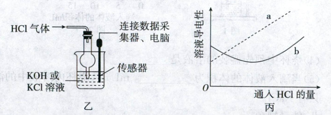 (3)如图乙所示,分别向10%KOH溶液、10%KCl溶液中缓慢通入HCl气体,测定该过程中溶液导电能力的变化,实验结果如图丙。(溶液体积、温度的变化可忽略)