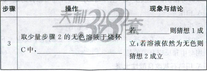(1)【猜想】①氢氧化钠与盐酸反应生成氯化钠和水,化学方程式为NaOH+HCl=NaCl+H₂O。【实验】碱溶液能使无色酚酞试液变红,要探究氢氧化钠溶液变为无色的原因,可以取少量步骤2的无色溶液于烧杯C中,滴加10%NaOH溶液,若溶液变红,则说明无色酚酞试液未失效,猜想1成立;若溶液依然为无色,则说明无色酚酞试液失效,猜想2成立。