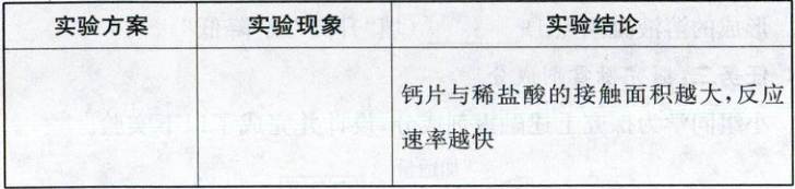 实验结论:钙片与稀盐酸的接触面积越大,反应速率越快。