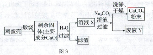 (6)确定鸡蛋壳中碳酸钙含量后,小林用图3所示流程制备碳酸钙粉末,并将其与淀粉浆按一定比例混合,倒入模具中,烘干,制得了简易“钙片”(假设鸡蛋壳中其他成分不溶于水且不参与反应)。