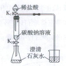 24. (2025·河南)某同学设计如图所示装置进行实验(夹持仪器略去,K₁、K₂均关闭)。打开K₁,待液体全部流下,关闭K₁,观察到烧杯中的溶液变浑浊;充分反应后,打开K₁、K₂,使液体全部流入锥形瓶,瓶中无明显现象。