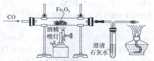 10 B【解析】工业炼铁 二氧化碳能使澄清石灰水变浑浊,实验室中常用澄清石灰水检验二氧化碳气体,A项正确;一氧化碳与氧化铁在高温条件下反应生成铁和二氧化碳,反应中一氧化碳得氧转化成二氧化碳,B项错误;装置末端一氧化碳被点燃,说明一氧化碳具有可燃性,C项正确;反应中一氧化碳夺取氧化铁中的氧元素生成铁和二氧化碳,使玻璃管中固体质量减小,D项正确。