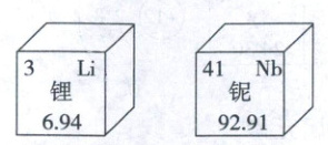 9.【新素材·科技成就】(2025·重庆)我国自主研制的薄膜铌酸锂(${LiNbO_{3}}$)光子毫米波雷达芯片可用于智能驾驶。锂元素和铌元素在元素周期表中的信息如图所示。下列有关说法不正确的是(