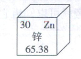 (2)元素周期表小格信息中最下面数字为相对原子质量,锌的相对原子质量为65.38。