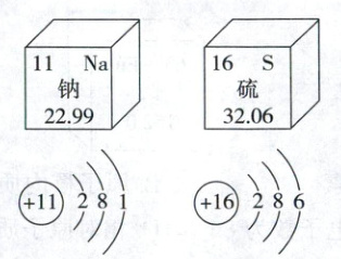 21. (2025·成都)徐寿在《化学鉴原》中命名并介绍多种元素,钠元素和硫元素在周期表中的信息及原子结构示意图如图。有关说法正确的是(