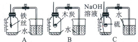 (9)A中铁丝在空气中不能燃烧;B中木炭燃烧生成二氧化碳气体,瓶内压强变化不明显;C中硫燃烧生成二氧化硫,能被氢氧化钠溶液吸收,能达到实验目的。试剂选择原则是能在空气中燃烧且只消耗氧气,反应后的产物为固体或能被某种溶液完全吸收的气体。