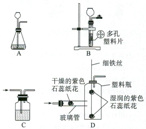(5)将纯净干燥的CO₂缓慢通入装置D中,则玻璃管内的干燥纸花