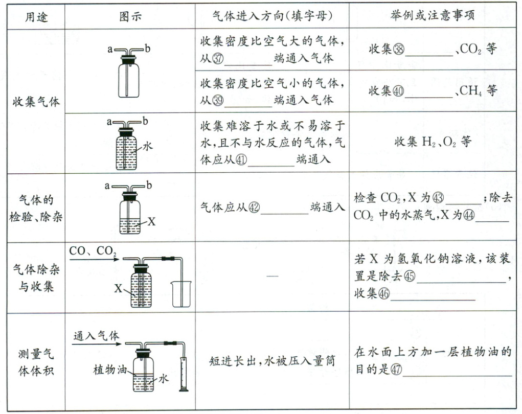 ㊲a ㊳O₂ ㊴b ㊵H₂ ㊶b ㊷a ㊸澄清石灰水 ㊹浓硫酸 ㊺CO₂ ㊻CO ㊼防止气体与水接触,溶于水(或与水反应)