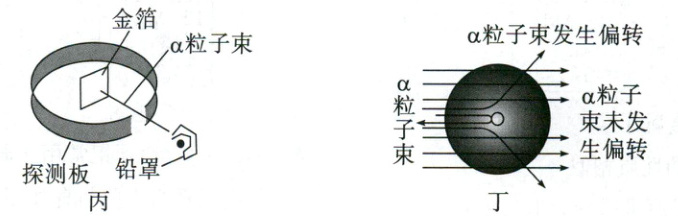 。(3)1909 年,英国物理学家卢瑟福进行了著名的α粒子散射实验(如图丙、丁)。根据这个实验获得的正确结论是