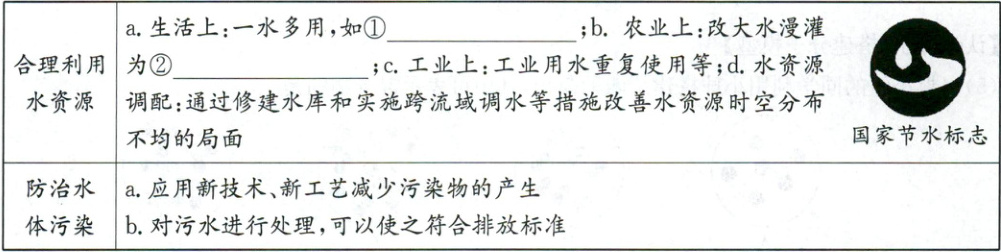①洗衣服的水用来冲厕所(合理即可) ②滴灌(或喷灌)