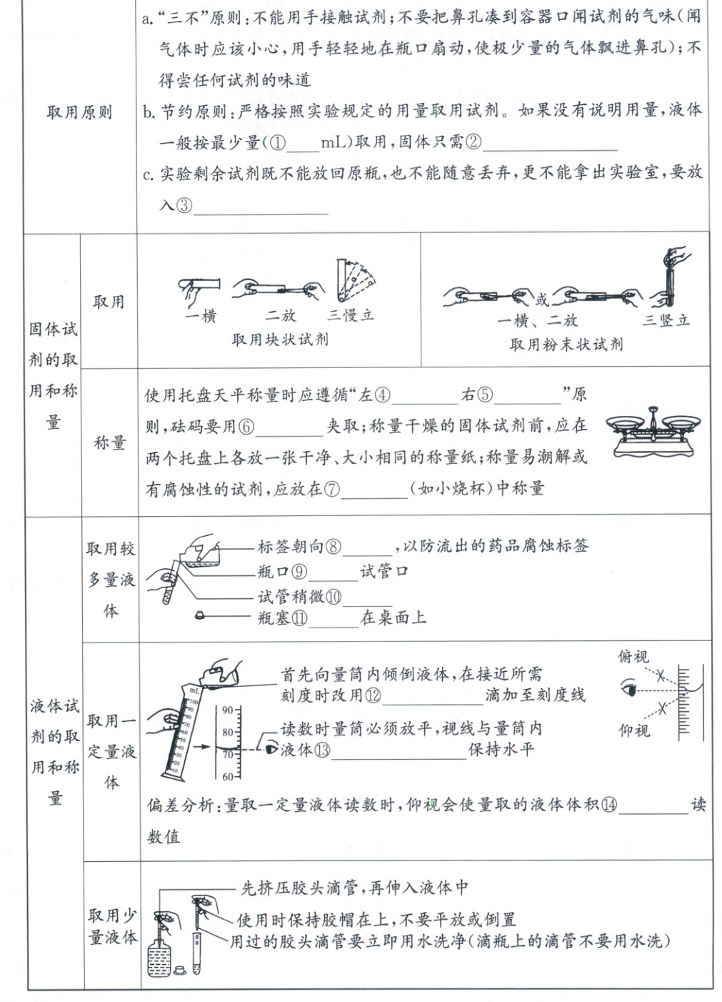 (1)化学试剂的取用