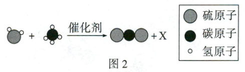 (2)硫化氢(H₂S)可在催化剂的作用下与甲烷反应生成二硫化碳(CS₂)和一种气体单质,其反应的微观示意图如图2所示。