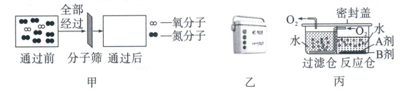 (4)分子型家用制氧器工作时气体变化的微观示意图如图甲,空气经过分子筛时氮气被吸附,氧气通过。