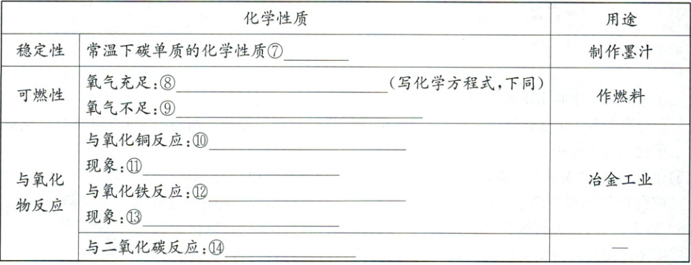⑩$C+2CuO\stackrel{高温}{=\!=\!=}2Cu+CO_{2}\uparrow$ ⑪黑色固体逐渐变为红色