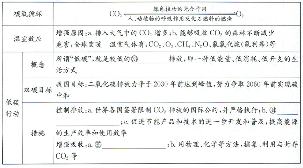 3. ㉝二氧化碳(或$CO_{2}$) ㉞减少使用化石燃料,多利用清洁能源