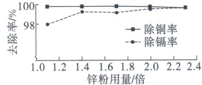 (3) 锌粉除铜、镉的试验结果如图所示。增加锌粉用量,铜的去除率不变,镉的去除率上升的原因是_。