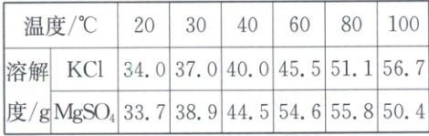 (1)结合表格数据分析图像信息,氯化钾的溶解度随温度升高而增大,硫酸镁的溶解度先随温度升高而增大,后随温度升高而减小,因此甲代表氯化钾溶解度曲线。