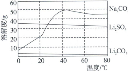 6. (2025·连云港)$80^{\circ}C$时将饱和$Li_{2}SO_{4}$溶液和饱和$Na_{2}CO_{3}$溶液混合反应,制备$Li_{2}CO_{3}$晶体。$Na_{2}CO_{3}$、$Li_{2}SO_{4}$、$Li_{2}CO_{3}$的溶解度曲线如图所示。下列说法正确的是(
