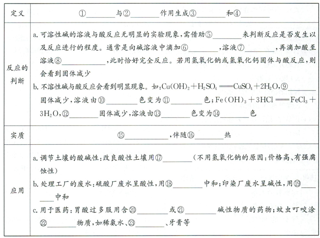 ⑭黄$ ⑮H^+ + OH^- \longrightarrow H_2O ⑯$放 ⑰熟石灰 ⑱熟石灰