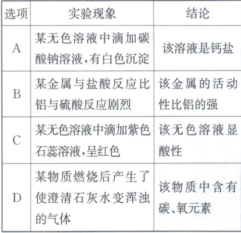 2. (2021·安徽改编)依据下列实验现象得出的结论,正确的是 (