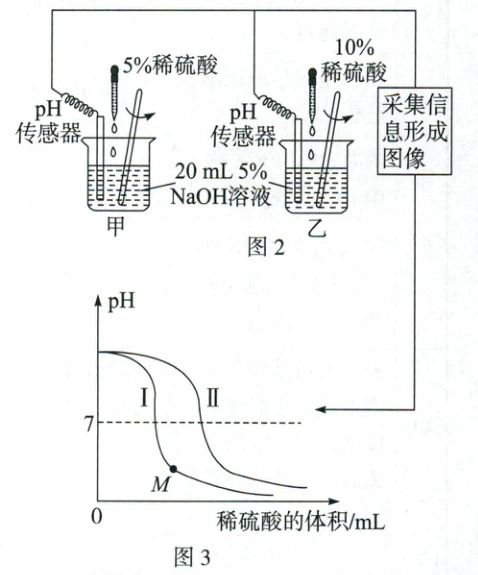 为探究氢氧化钠溶液与稀硫酸反应过程中pH 的变化,甲、乙两组同学按图 2 所示装置进行实验,测定出溶液 pH 变化如图3 所示。