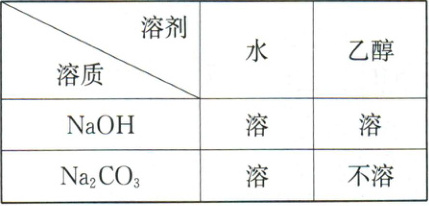 20℃时,NaOH、Na₂CO₃ 在水和乙醇中的溶解性如表所示。