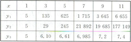 1. 若三个变量 $ y_1,y_2,y_3 $,随着变量 $ x $ 的变化情况如下表.