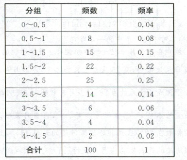 0~0.5,4;0.5~1,8;1~1.5,15;1.5~2,22;2~2.5,25;2.5~3,14;3~3.5,6;3.5~4,4;4~4.5,2。
