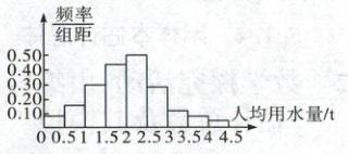 (3)人均月用水量在$3t$以上的居民所占的比例为$6\% + 4\% + 2\% = 12\%$,即大约有$12\%$的居民人均月用水量在$3t$以上,$88\%$的居民人均月用水量在$3t$以下,因此政府的解释是正确的。