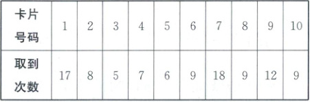 8. 从存放号码分别为 1,2,3,…,10 的卡片的盒里,有放回地取 100 次,每次取一张卡片,并记下号码,统计结果如下: