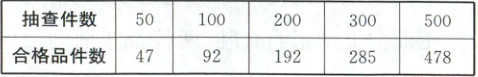 10.1000 解析:由题意可知,抽查的合格率分别为0.94,0.92,0.96,0.95,0.956,随着抽查数量的增多,合格率大约为0.95,950÷0.95 = 1000,故大约需抽查1000件产品。