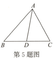 5. 如图,在△ABC中,AB = 6,AC = 4,AD为中线,则△ABD与△ACD的周长之差为(