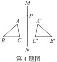 4. 如图,△ABC与△A'B'C'关于直线MN对称,P为MN上任意一点,下列说法不正确的是(