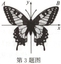 3. 蝴蝶标本可以近似地看作轴对称图形,如图,将一只蝴蝶标本放在平面直角坐标系中,若图中点A的坐标为(-9,6),则其关于y轴对称的点B的坐标为(