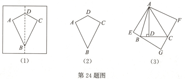 24. (14分)在数学实验课上,老师让学生以“折叠筝形”为主题开展数学实践探究活动。定义:两组邻边分别相等的四边形叫作筝形。