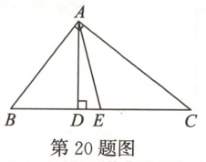 20. (9分)如图,已知AD,AE分别是△ABC的高和中线,AB = 3 cm,AC = 4 cm,BC = 5 cm,∠CAB = 90°,求: