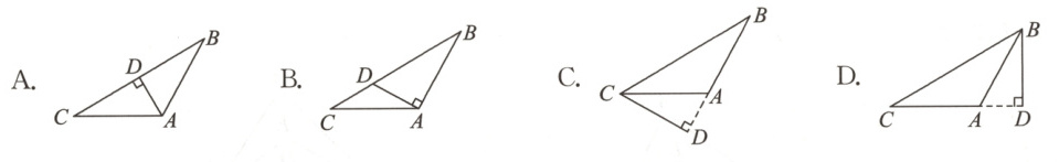 3. 要求画△ABC的边AB上的高,下列画法中,正确的是(