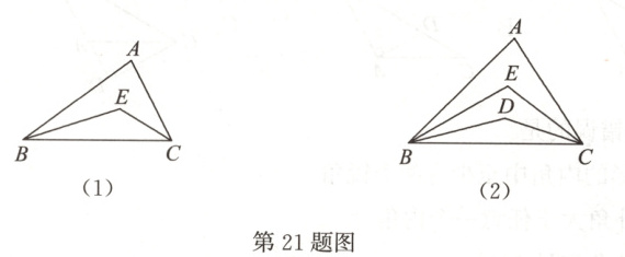 【问题发现】如图(1),在△ABC中,BE平分∠ABC,CE平分∠ACB。