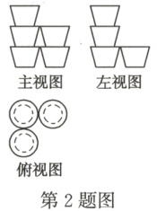 2. 若干桶方便面摆放在桌子上,如图所示是它的三视图,则这一堆方便面共有(