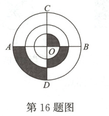 16. 如图,线段 $ AB = 4 \, cm $,且 $ CD \perp AB $ 于点 $ O $,则阴影部分的面积是__________.
