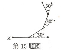 15. 如图所示,小亮从$A$点出发,沿直线前进10米后向左转$30^{\circ}$,再沿直线前进10米,又向左转$30^{\circ}·s·s$照这样走下去,他第一次回到出发地$A$点时,一共走了______米.