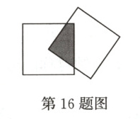 16. 如图,有两个边长为4cm的正方形,其中一个正方形的顶点在另一个正方形的中心上,那么图中阴影部分的面积是______$cm^2$.