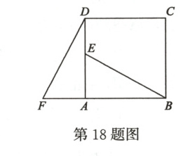 18. (8分)四边形$ABCD$是正方形,$\triangle ADF$顺时针旋转一定角度后得到$\triangle ABE$,如图,若$AF = 4$,$AB = 7$.