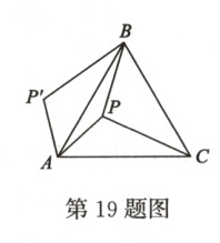 19. (9分)如图,点$P$是等边三角形$ABC$内的一点,且$PA = 6$,$PB = 8$,$PC = 10$.若将$\triangle PAC$绕点$A$逆时针旋转后,得到$\triangle P'AB$.