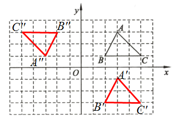 17. (7分)如图,$A$点的坐标为$(3,3)$,将$\triangle ABC$先向下平移4个单位长度得$\triangle A'B'C'$,再将$\triangle A'B'C'$绕点$O$逆时针旋转$180^{\circ}$得$\triangle A''B''C''$,请你画出$\triangle A'B'C'$和$\triangle A''B''C''$,并写出点$A''$的坐标.