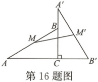 16. 如图,在$Rt\triangle ABC$中,$\angle ACB = 90^{\circ}$,$\angle A = 30^{\circ}$,将$\triangle ABC$绕点$C$顺时针旋转$90^{\circ}$得到$\triangle A'B'C$,$M$,$M'$分别是$AB$,$A'B'$的中点。若$BC = 2$,则线段$MM'$的长为___