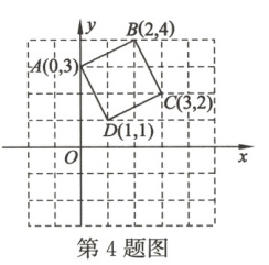 4. 正方形$ABCD$在平面直角坐标系中的位置如图所示,将正方形$ABCD$绕$D$点顺时针方向旋转$90^{\circ}$后,$B$点的坐标为(