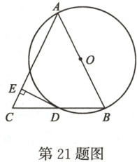 21. (12分)如图,$AB$是$\odot O$的直径,$BD$是$\odot O$的弦,延长$BD$到点$C$,使$DC = BD$,连接$AC$,过点$D$作$DE \perp AC$,垂足为$E$.