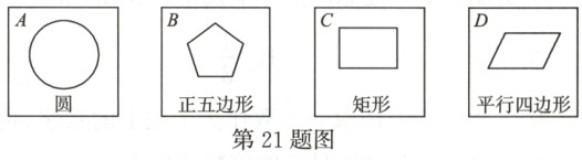 21. (12分)如图,有四张反面完全相同的纸牌$A,B,C,D$,其正面分别画有四个不同的几何图形,将四张纸牌洗匀,正面朝下随机放在桌面上.